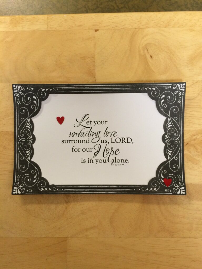 When the cards are placed in the mailbox, we pray that God will use them to encourage your heart as you are reminded of His faithful, loving kindness and tender mercies that are new every morning.
